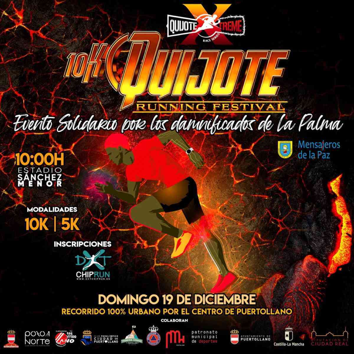 Este 19 de diciembre se llevará a cabo el 10K Quijote Running festival. Una carrera solidaria totalmente urbana en la ciudad de Puertollano (Ciudad Real). La misma es un evento solidario en favor de los damnificados de La Palma.