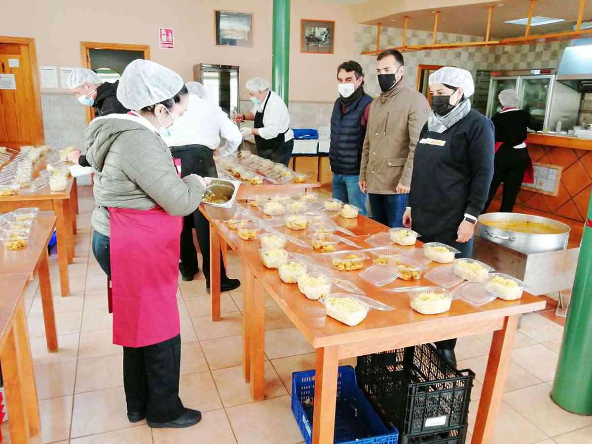 En las instalaciones del Centro de Ocio y Naturaleza de la Dehesa Boyal, alumnos y profesores del taller de empleo se afanan cada semana en cocinar una receta diferente que posteriormente se envasa en recipientes individuales que son transportados hasta el almacén de la Asociación de Veteranos del Calvo Sotelo para su posterior reparto, todo ello cumpliendo con las medidas de seguridad e higiene alimentaria correspondientes.