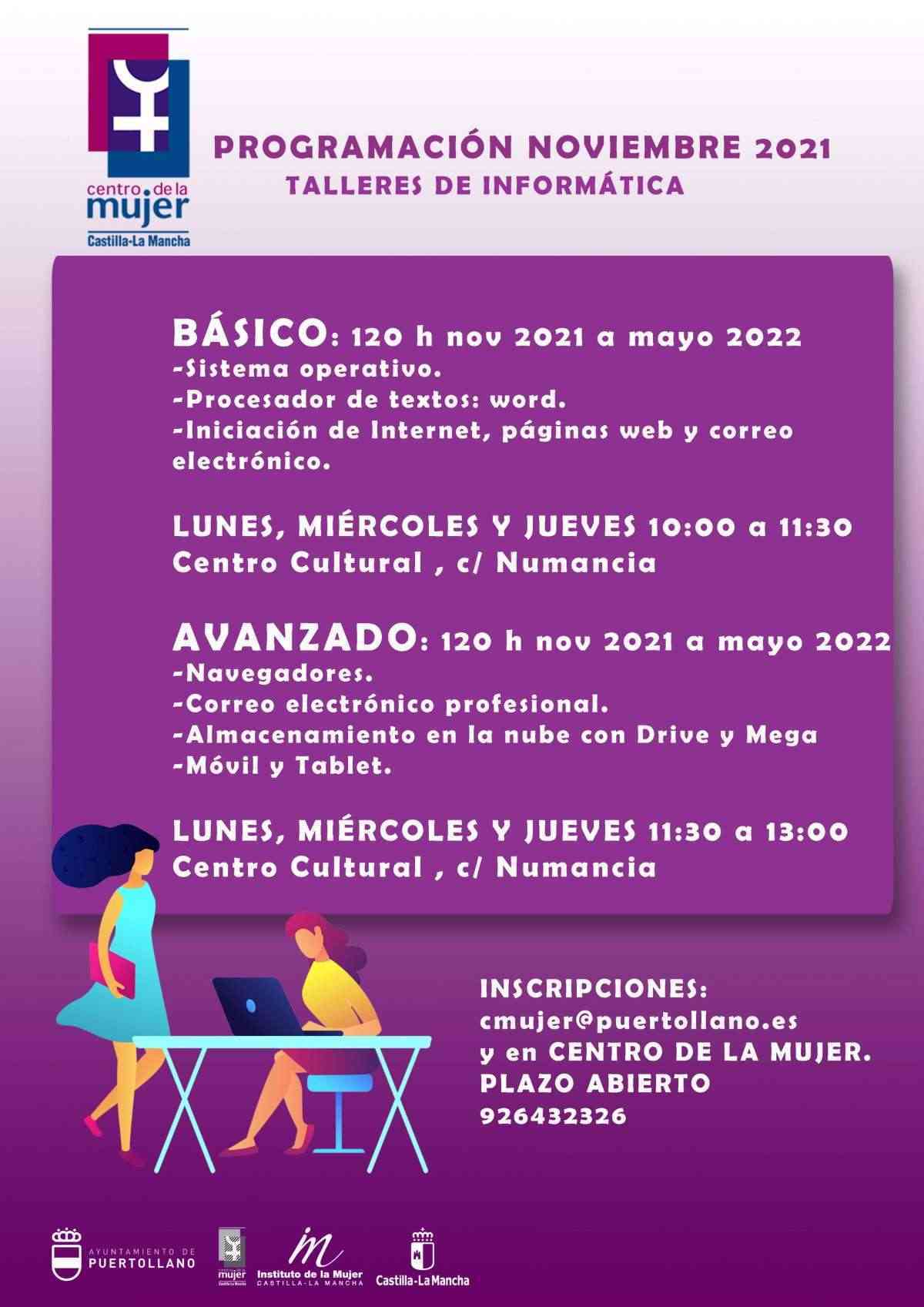 Los talleres de informática básica y avanzada constan de 120 horas y 18 plazas cada uno, son talleres presenciales en colaboración con el área de Cultura del Ayuntamiento y se imparten en el Centro Cultural. Las inscripciones se pueden realizar en el Centro de la Mujer, en la calle Gran Capitán, 1.