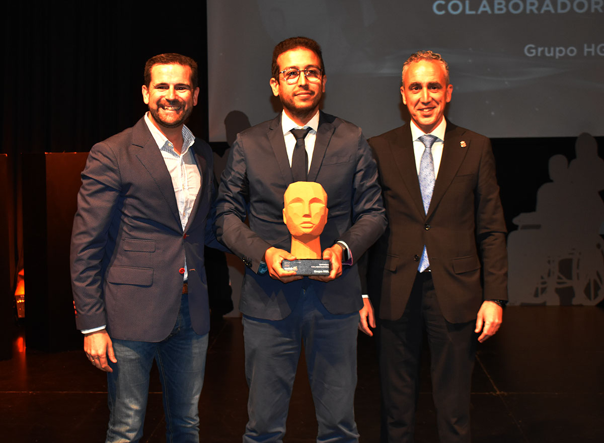David Guarnizo, gerente de “HGL”, no se quedó atrás al recibir el premio a empresa colaboradora de manos del director general de Amiab, Pedro Sáez, y del alcalde, Miguel Ángel Ruiz.
