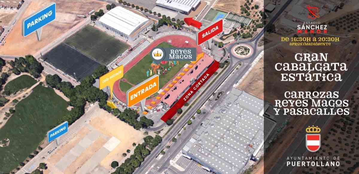 La tarde del 5 de enero tendrá lugar una cabalgata estática de Reyes Magos en el estadio Sánchez Menor en Puertollano (Ciudad Real). Con esta cabalgata estática las familias podrán e acceder al interior del recinto para dar la bienvenida a Melchor, Gaspar y Baltasar a su llegada a la ciudad.
