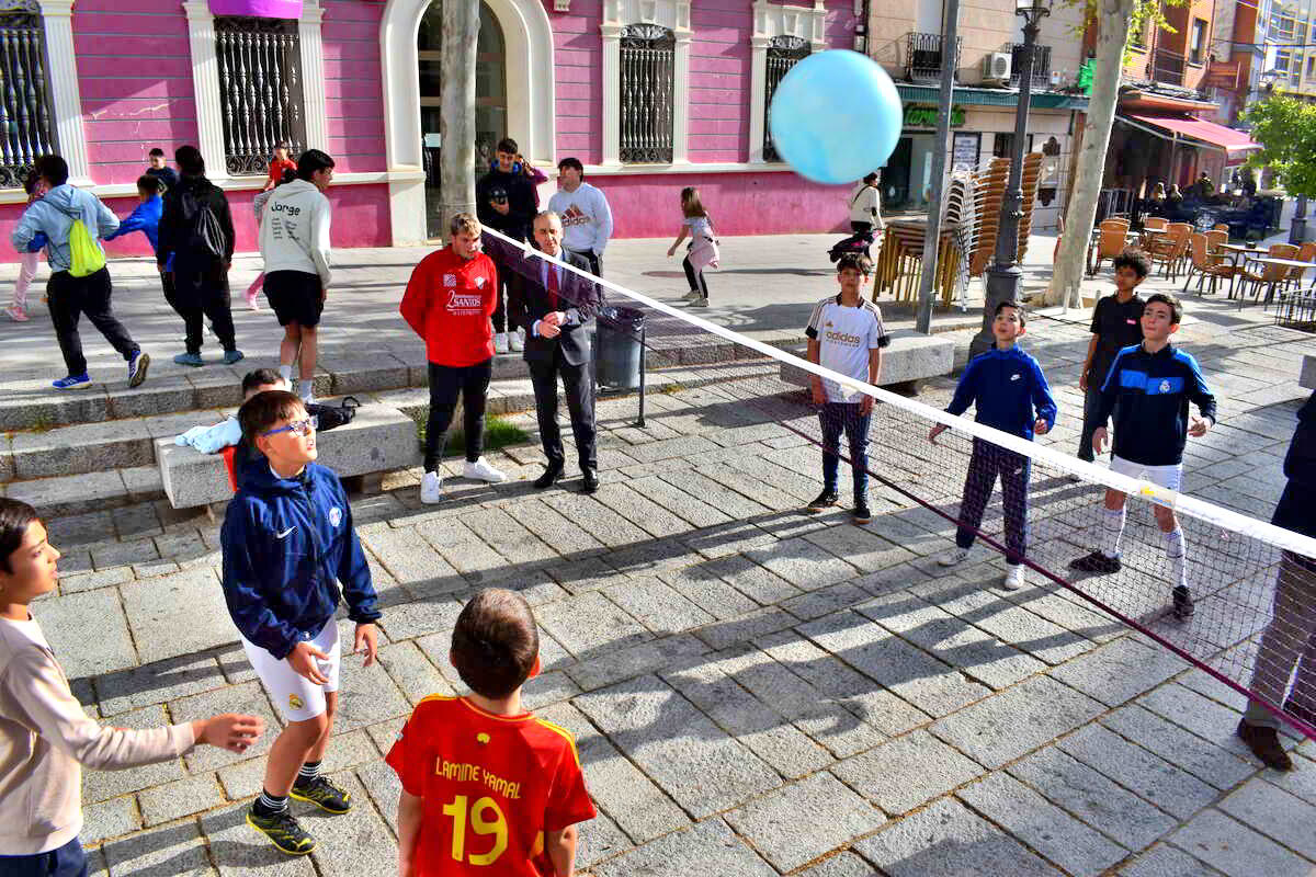 La plaza del Ayuntamiento de Puertollano se ha convertido en una gran cancha de juego en el día de la educación física en una iniciativa conjunta del CIFP Virgen de Gracia y el colegio David Jiménez Avendaño para dar visibilidad a una formación que esencial para el desarrollo personal de escolares y estudiantes.