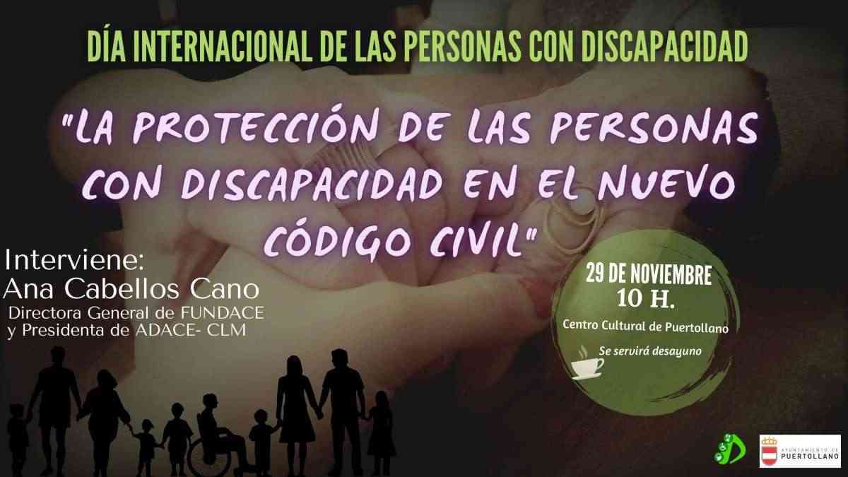 La charla ‘La protección de las personas con discapacidad en el nuevo Código Civil’, ha organizado el Consejo Local de Discapacidad de Puertollano (Ciudad Real). La que será impartida por org Ana Cabellos, directora general de la Fundación Tutelar de Daño Cerebral de Castilla-La Mancha (Fundace) y presidenta de la Asociación de Daño Cerebral Sobrevenido de Castilla-La Mancha (Adace-CLM).