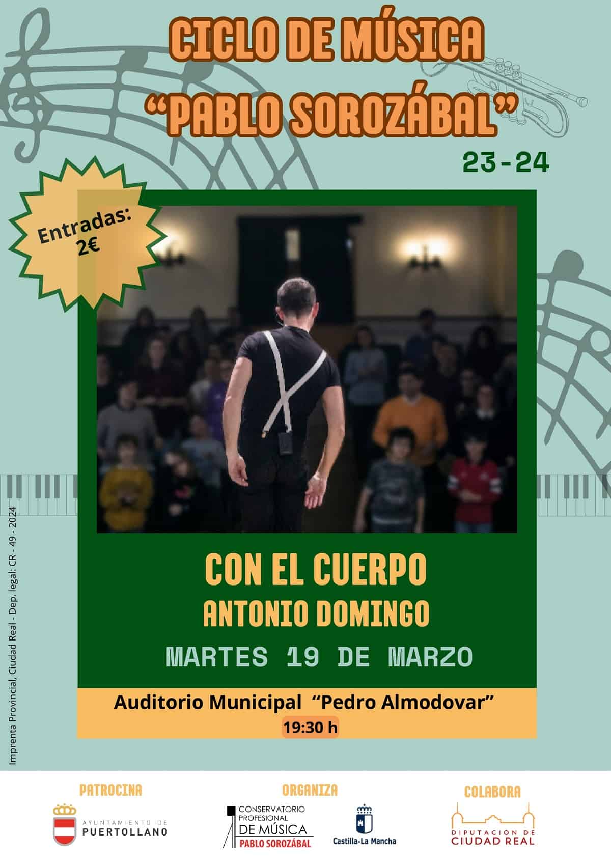El próximo martes 19 de marzo a las 19:30 horas, el Auditorio Municipal de Puertollano se llenará de ritmo y energía con el concierto «Con el Cuerpo», a cargo de Antonio Domingo. Este evento musical innovador, con un precio de entrada de tan solo dos euros, promete una experiencia interactiva en la que el público será una parte activa de la orquesta.