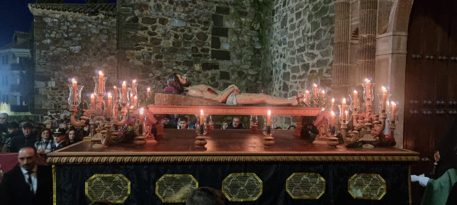 En un momento de profunda emotividad, el Cristo yacente, portado por 35 costaleros y obra de D. José Ángel Palacios Fernández, imaginero de Linares, se mostraba ante los ojos de los asistentes, seguido a su vez por el paso de la Soledad.