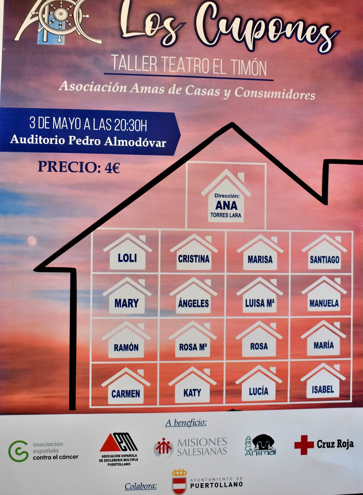 El próximo 3 de mayo a las 20:30 horas, el Auditorio Municipal se convertirá en escenario de una emotiva representación teatral. El taller de teatro “El Timón”, un grupo compuesto por amas de casa dedicadas al arte dramático, presentará la obra “Los cupones”, dirigida por Ana Torres Lara. Este evento no solo promete conmover al público con una narrativa intensa, sino que también tiene como noble objetivo recaudar fondos para causas sociales importantes.