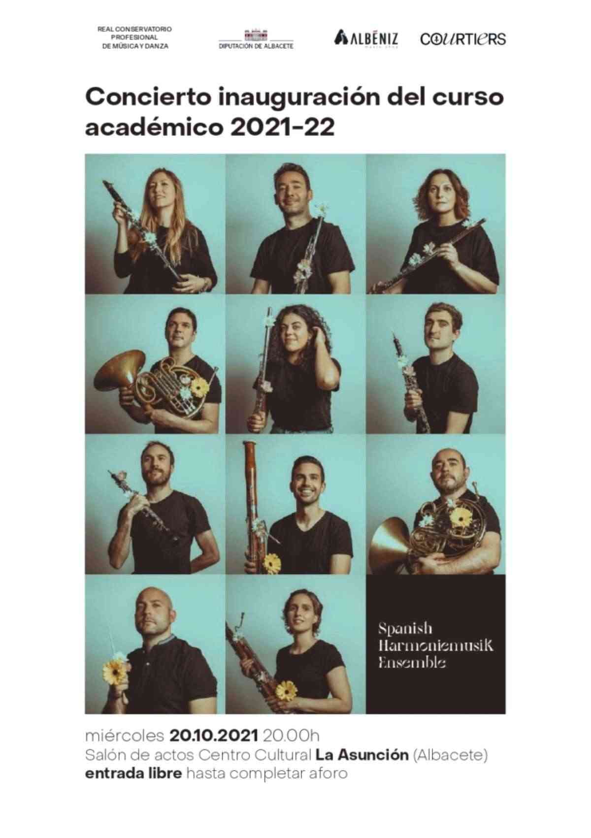 Un regreso a los escenarios que inició este miércoles de la mano de ‘Harmoniemusik Ensemble’. Grupo de viento formado por una decena de jóvenes músicos y músicas de los cuales, cuatro fueron estudiantes del Centro albacetense (Mª Elena Calonge Casero -flauta-; Mª José Martínez González, -flauta-; David Bravo Marín -clarinete-; y Juan Luis Real Pardo -trompa-).
