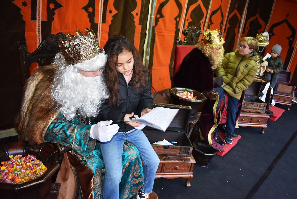Los pajes reales desempeñaron la labor de introducir a los niños entusiasmados ante Melchor, Gaspar y Baltasar, quienes, entre sonrisas y miradas de asombro, ya empezaron a recoger los anhelos infantiles entregados en forma de cartas y susurros. Este intercambio de ilusiones se vio endulzado con caramelos blandos ofrecidos por los monarcas, adelanto de los regalos que están por venir en la tan anticipada noche del viernes.