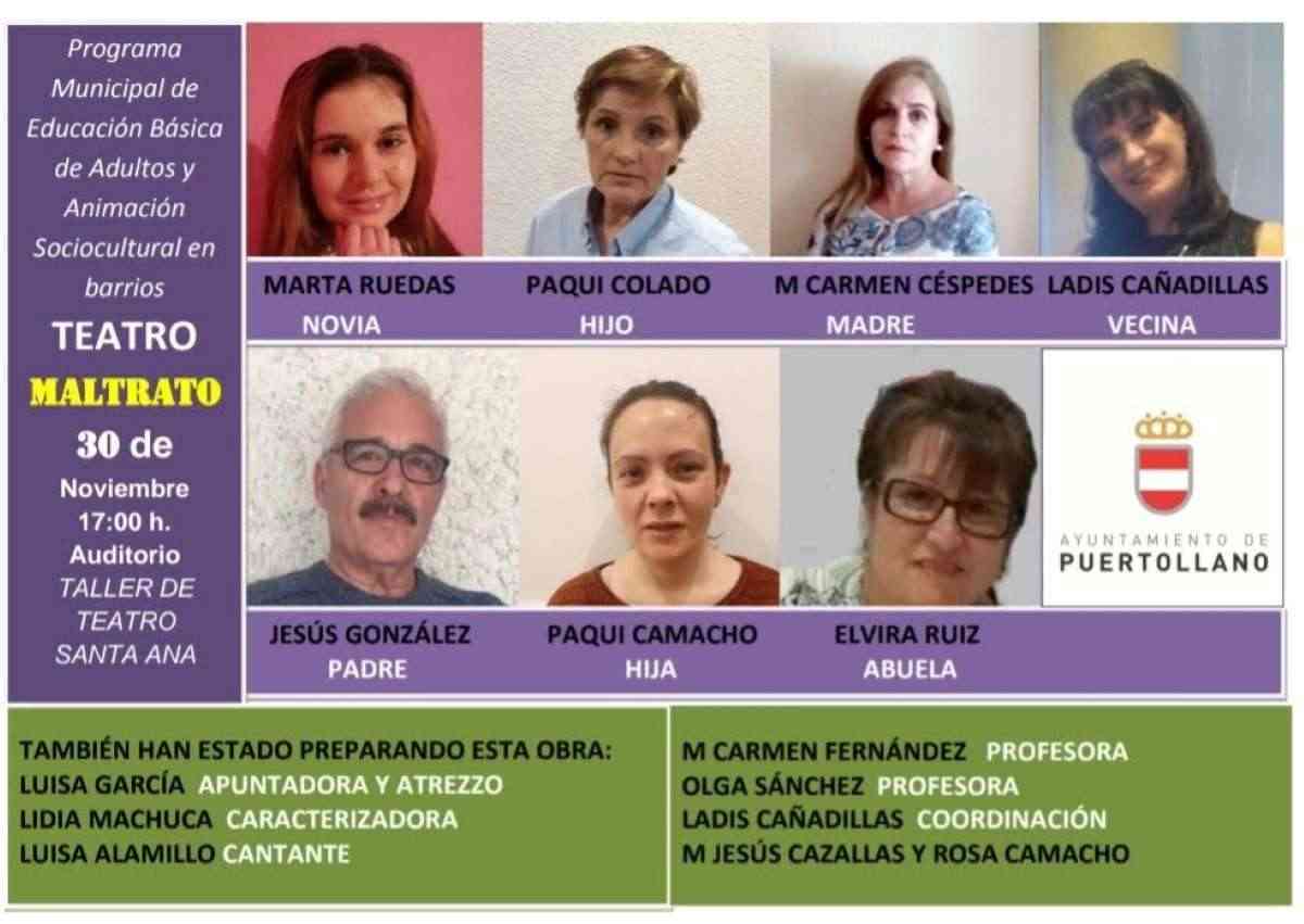 El taller de teatro Santa Ana representará “Maltrato” de Rafael Belmonte el día de mañana 30 de noviembre. Será a las 17 horas en el Auditorio Municipal de Puertollano (Ciudad Real) y con acceso gratuito.
