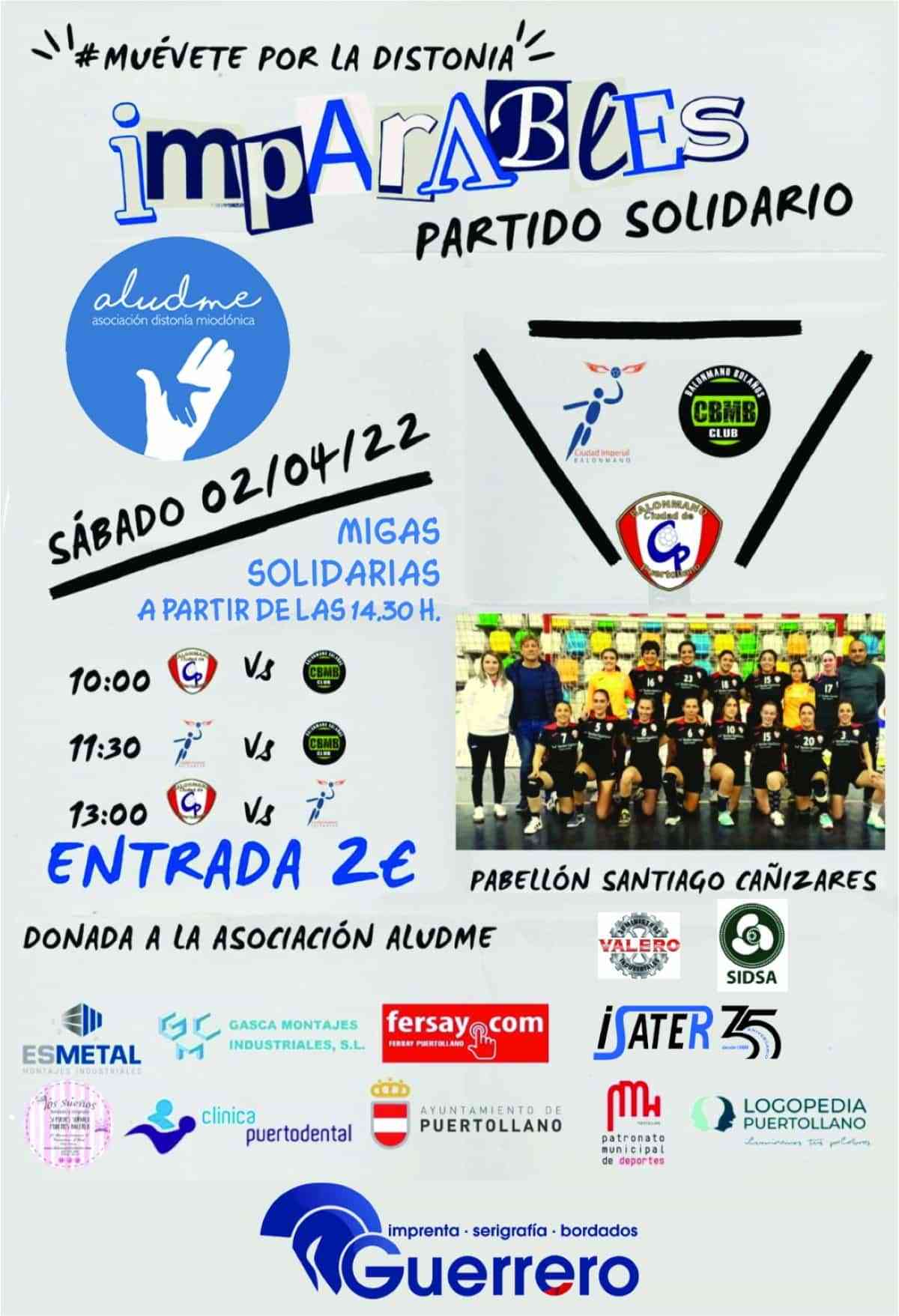 El Club Balonmano femenino “Ciudad de Puertollano” se moverá por la distonía este sábado 2 de abril desde las diez horas en el partido solidario que celebrará en el pabellón Santiago Cañizares (calle Valdepeñas). Y en el que habrá migas solidarias a las dos y media de la tarde y rifas con lotes de regalos en cada uno de los descansos de los partidos.