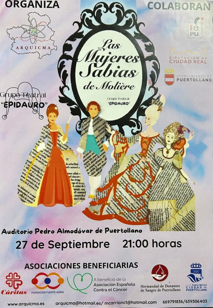 El grupo Epidauro representará «Los mujeres sabias» de Moliére el próximo viernes 27 de septiembre a las 21 horas en el Auditorio Municipal en la XII edición de teatro solidario de Arquicma en colaboración con el Ayuntamiento de Puertollano.