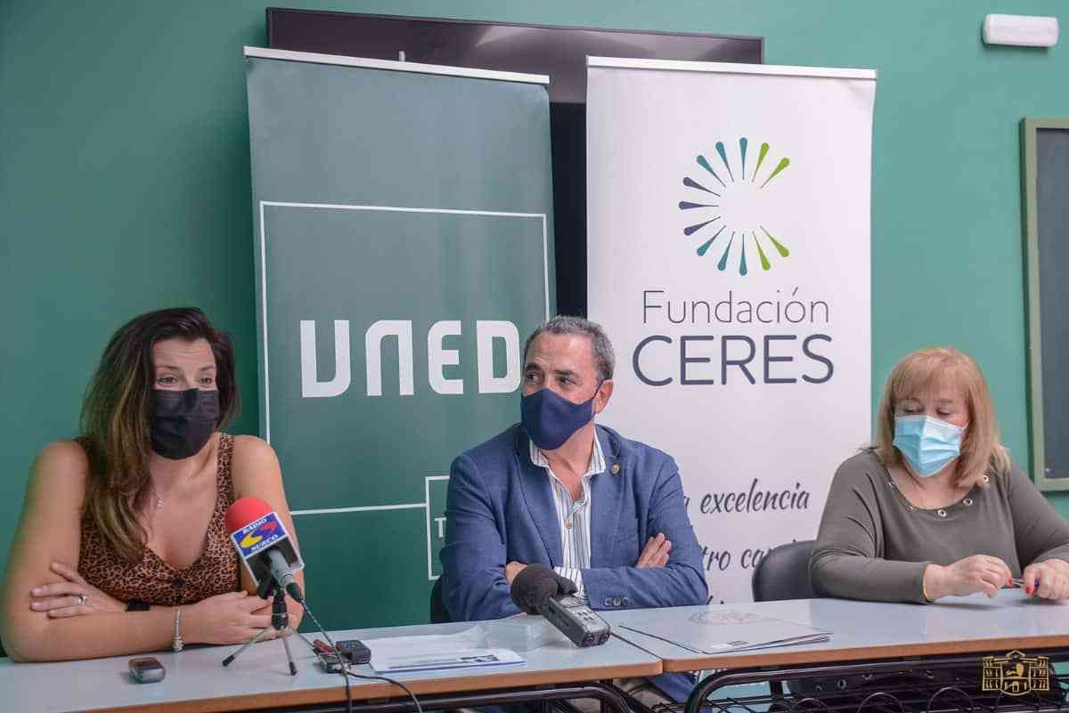 Un convenio de colaboración entre la UNED Ciudad Real, representada por su director Pedro Jesús Sánchez, fue suscrito con la presidenta de la Fundación CERES, Antonia Valverde, hoy en el aula de la UNED en Tomelloso (Ciudad Real).