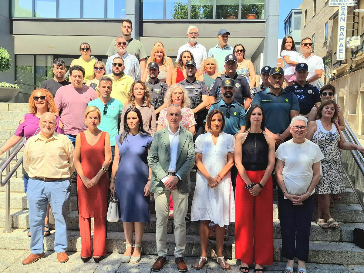 La Corporación Municipal con el alcalde a la cabeza, Miguel Ángel Ruiz, junto a vecinos, Fuerzas de Seguridad del Estado y trabajadoras del Centro de la Mujer han guardado un minuto de silencio ante el Ayuntamiento de Puertollano en repulsa y condena por el asesinato machista de Virginia, una mujer de 41 años de Cifuentes (Guadalajara).